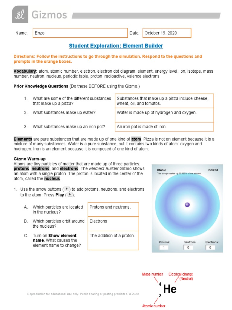 Element Builder Gizmo Answer Key Free